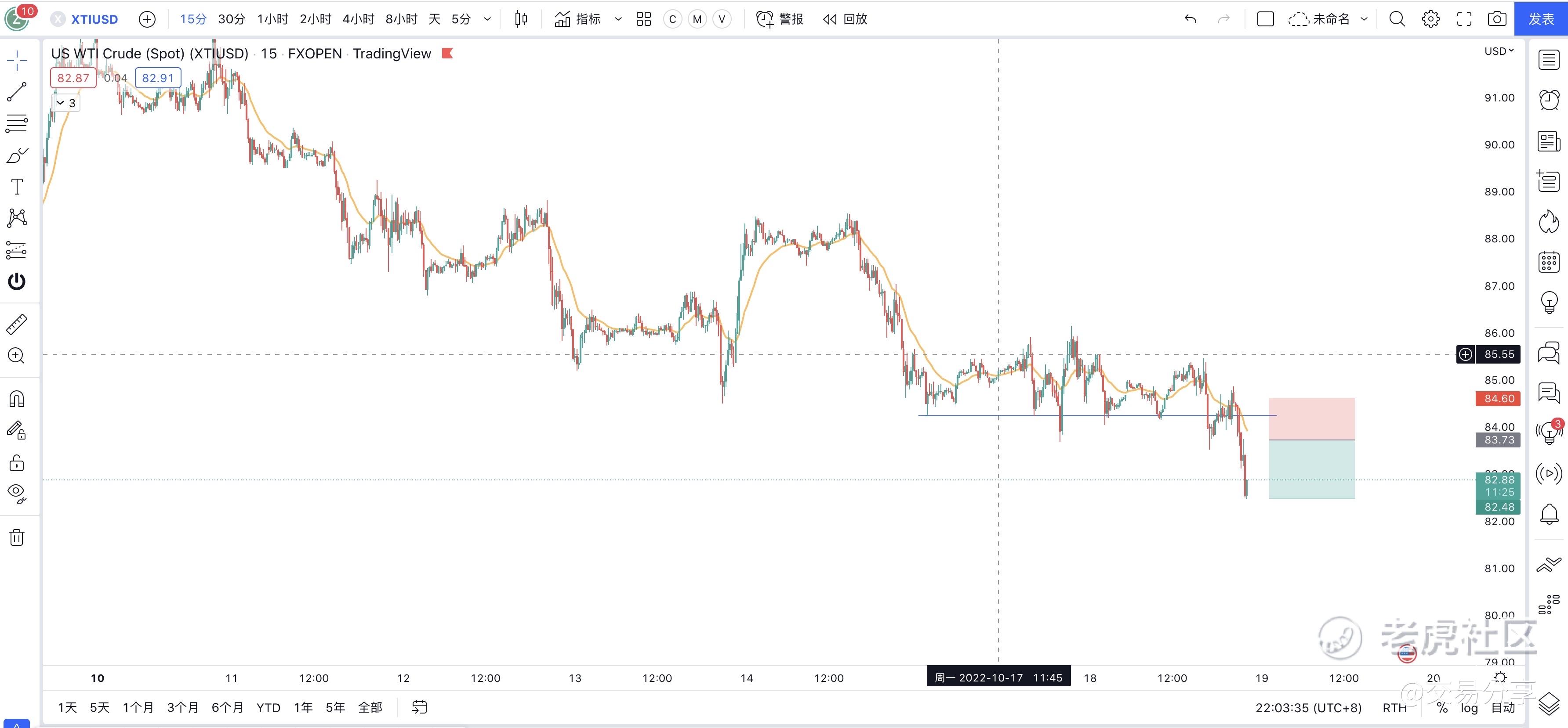 xtiusd的一次交易机会,支撑位的强突破,弱回撤后的再次突破,盈亏比1.5,后续走势比较丝滑,移动止损可以做到2.5的盈亏比,但是我还是在1.5的位置止盈了,赚最确定性的钱即可