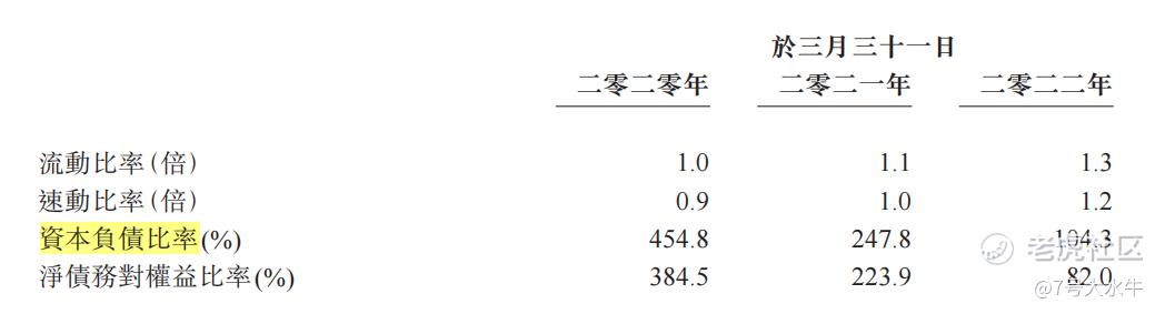 20至22年资本负债比率分别为454.8%、247.8%及104.3%,说明负债非常高;