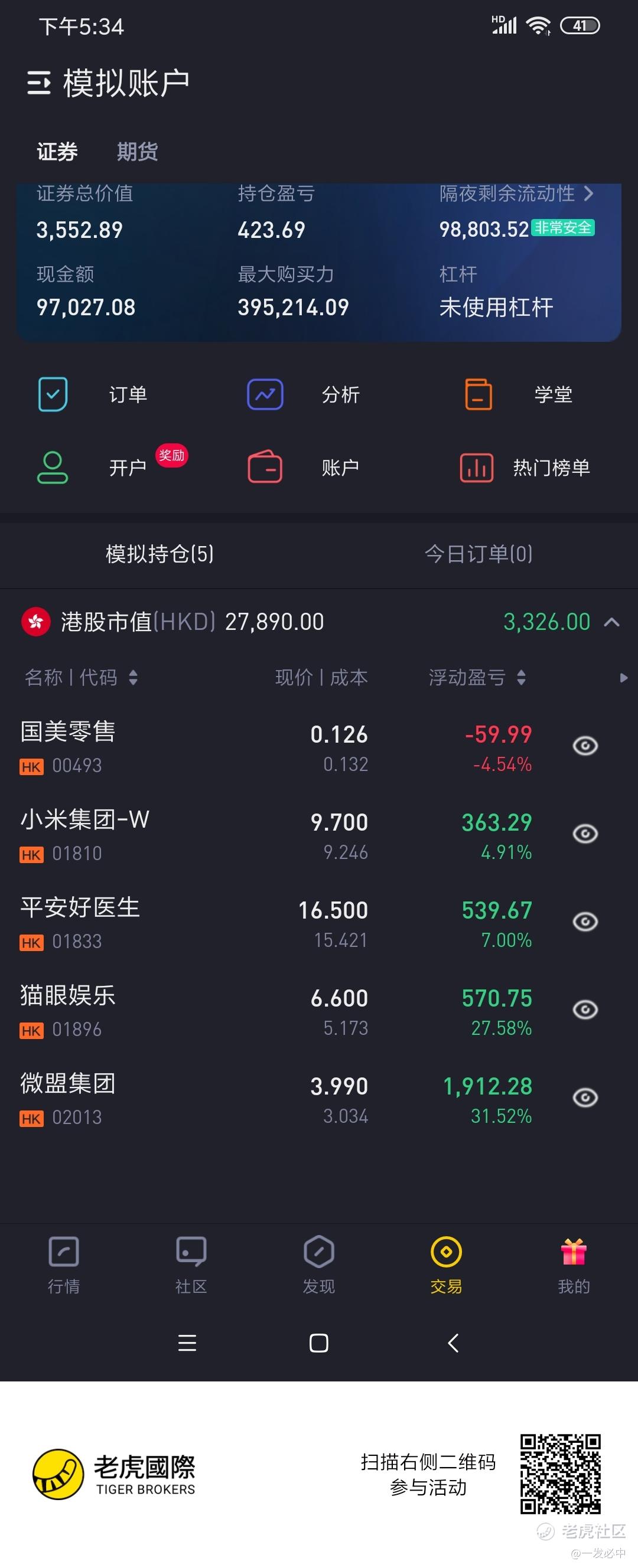近期模拟了一把,就小米出现了回测,其他直接盈利。国美亏。有时后也会犯错。就看怎么应对了。大A有些时候犯错当天卖不了。导致有时真割在低位。想补失望不敢补。。看看港股的机制了。
