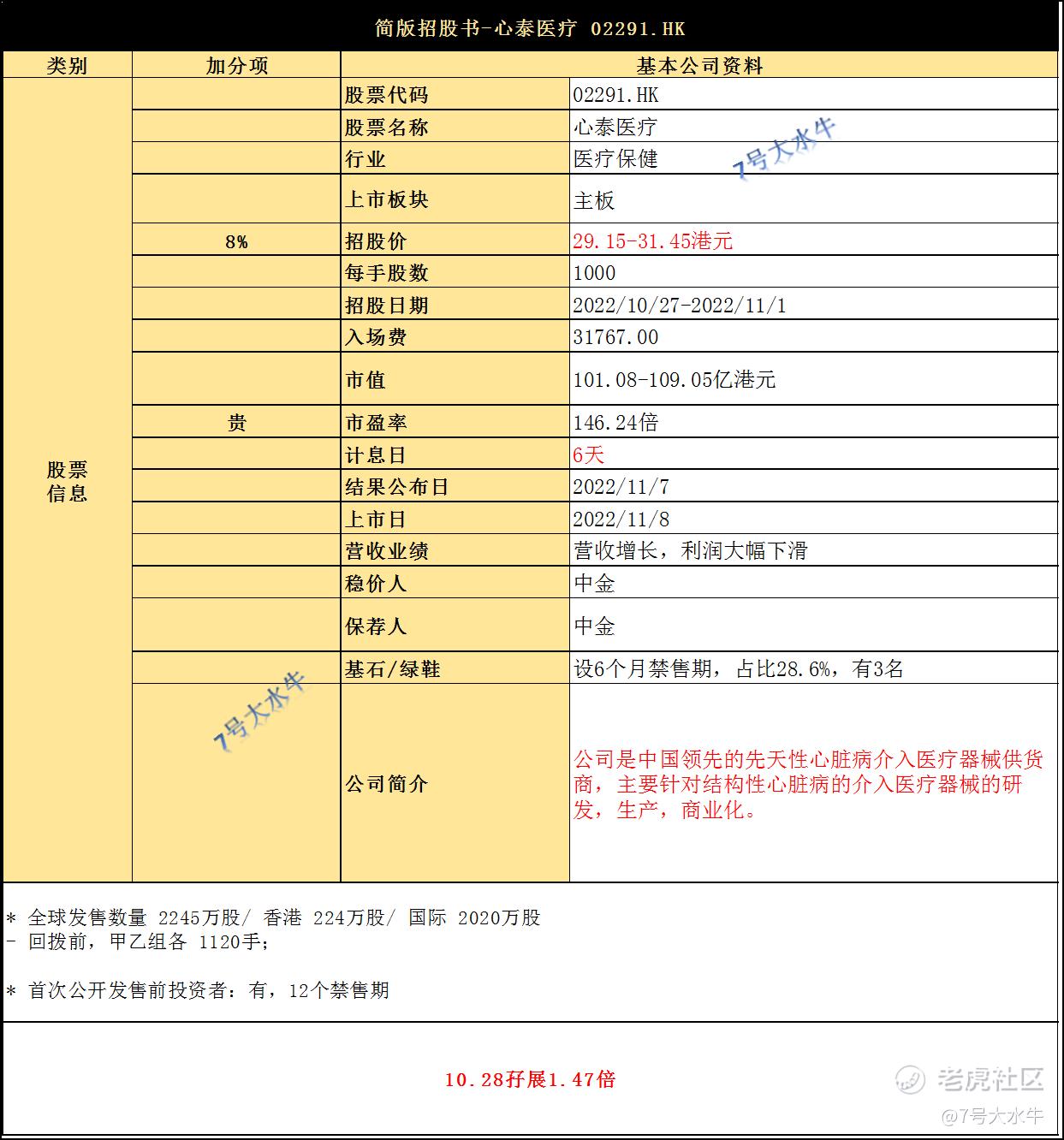 每股29.15-31.45港元,每手1000股,入场费31767港元,预计11月8日上市。