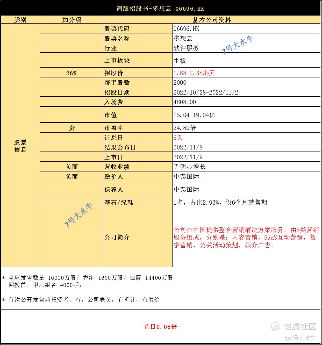 每股1.88-2.38港元,每手2000股,入场费4808港元,预计2022年11月9日上市。
