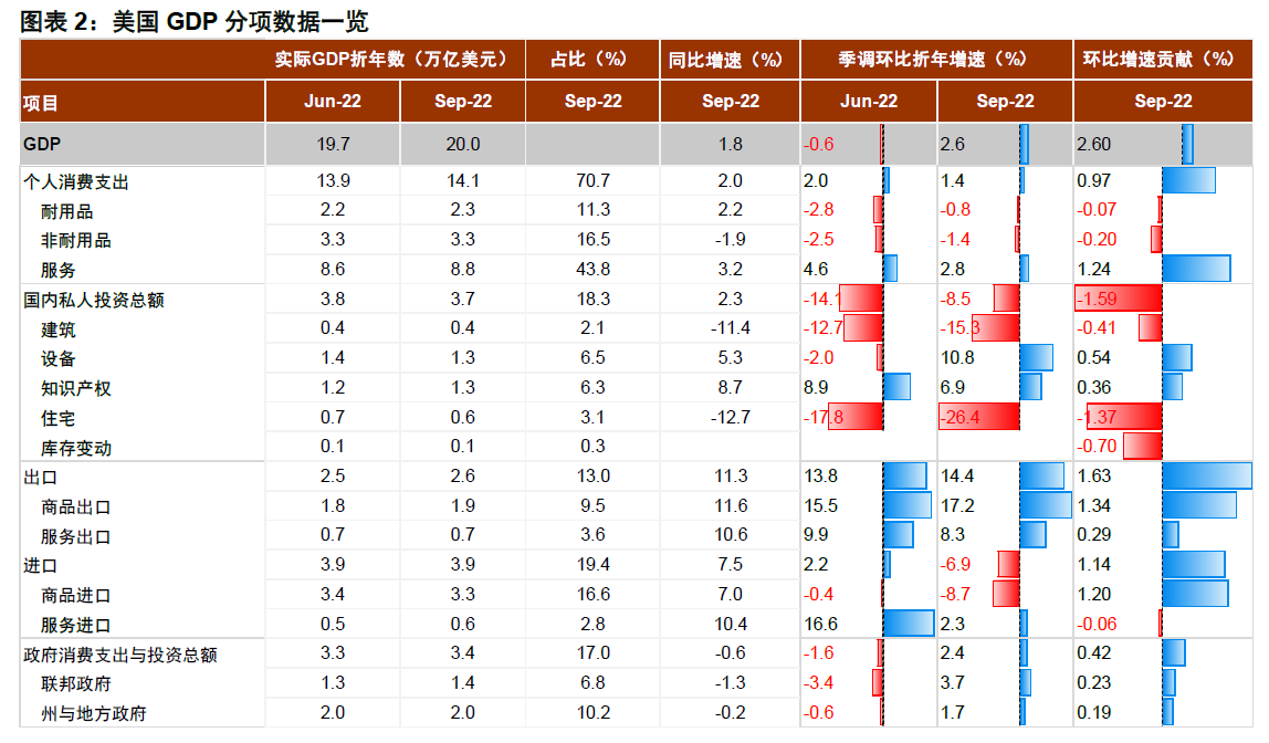 这里要着重提一下9月GDP。虽然美国9月GDP也是超了预期,但从细分项目来看,出口扩张和进口下降的贡献分别高达1.6和1.1个百分点,两者合计贡献2.7个百分点,几乎相当于GDP的所有增幅。