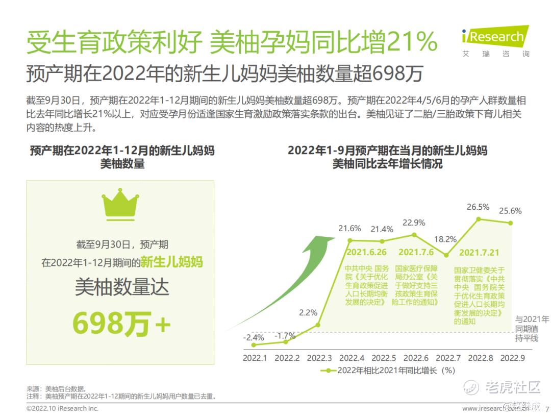 第1个信号是,白皮书发现截至2022年9月,在美柚上填写预产期在2022年1~12月的新生儿妈妈数量超过698万,接近700万,同比大幅增长。