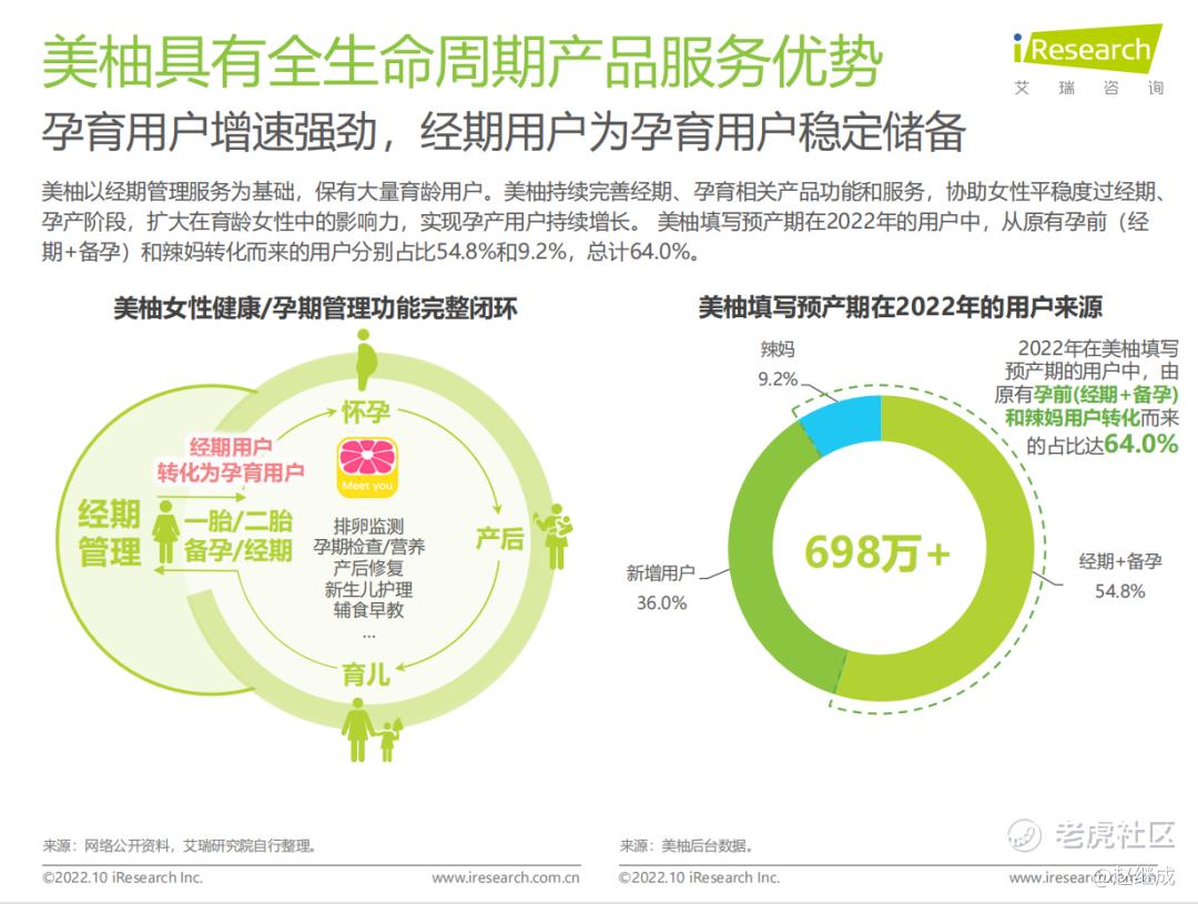 美柚从最初的记录生理期,变成备孕、怀孕、育儿全方位健康管理;依靠庞大的用户基数和高质量的社区,打造贴心的电商服务;提供专业的孕育知识,以及更为全面实用的工具,满足全生命周期女性用户的需求……“孕育人群前置”、“女性全生命周期”,这是美柚孕育用户的数量和质量的双重优势。