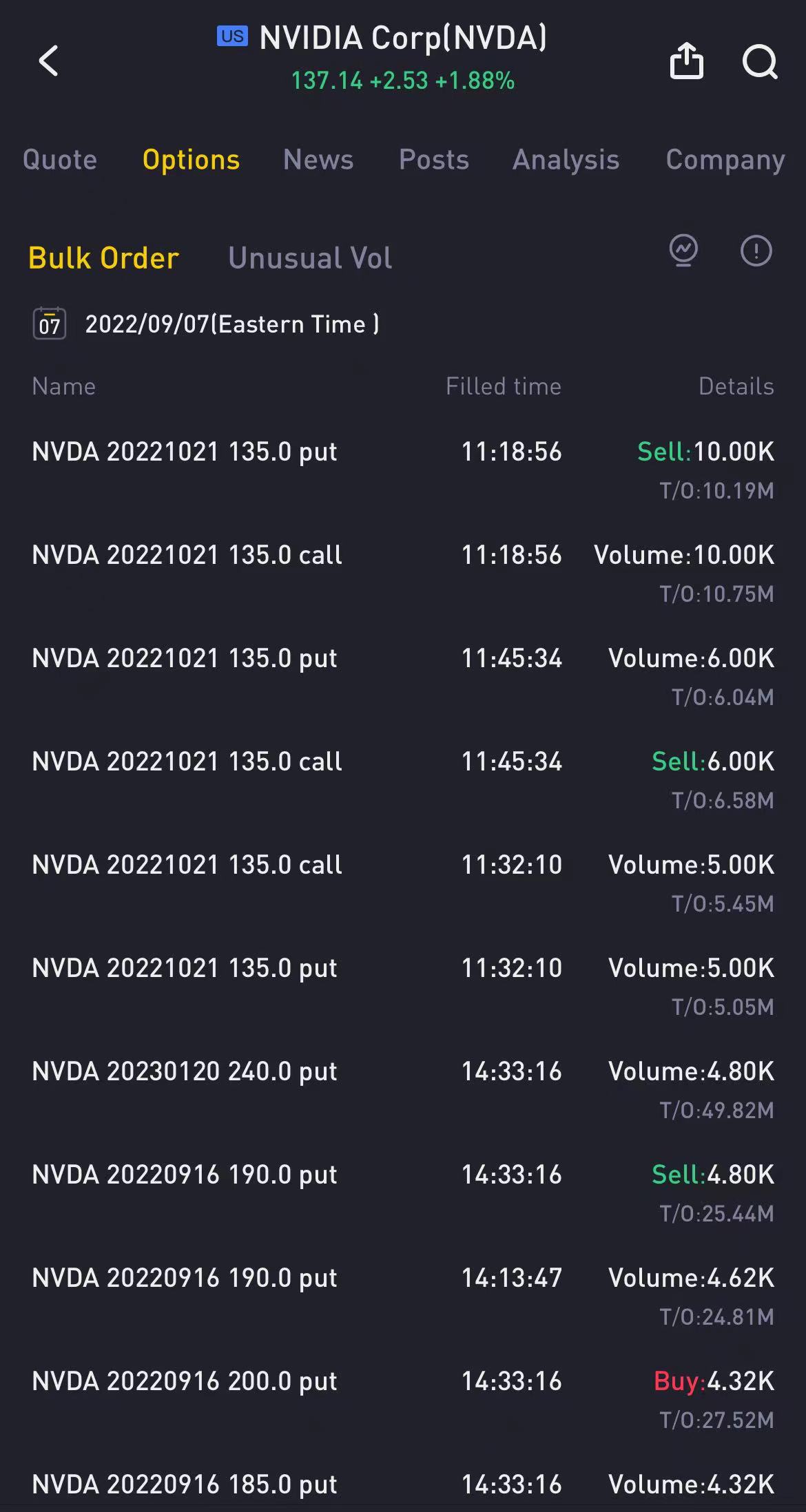 $英伟达(NVDA)$ :继昨天AMD出现大量跨式期权后,英伟达也出现了大量跨式成交: