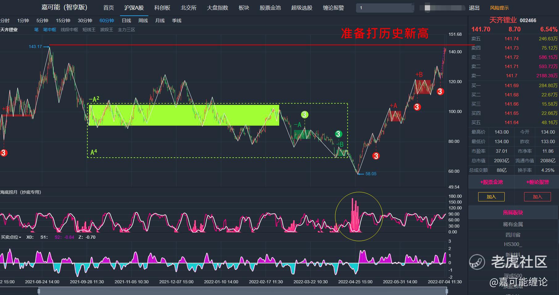 锂电池龙头,天齐锂业(002466)差一点点准备新高了,如下图所示: