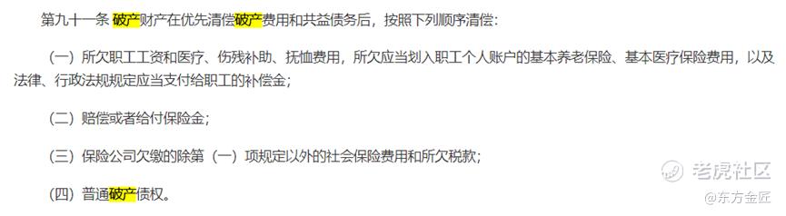 其二,破产的清算程序是,保险赔偿金在普通债权之前,要先进行保险赔付;