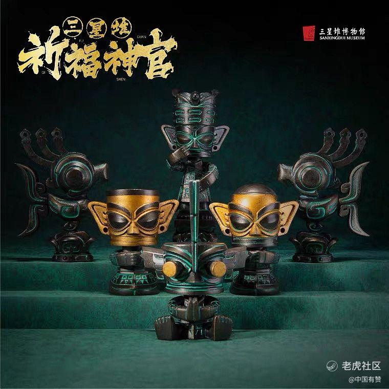 切中流行营销模式的“三星堆盲盒”,更是成为热销爆款。在2021年,三星堆博物馆推出祈福神官主题盲盒,选取了5个极具代表性的文物形象——大立人、纵目面具、铜鸟、圆头金面、平头金面,形象呆萌可爱又别具复古味道,堪称“盒界的一股清流”。粉丝们选择“单款盲盒”,即可随机收到5个形象中的一个;若选择“全套端盒”,则可收到全套形象,还有机会获得“隐藏款”,吊足了胃口。