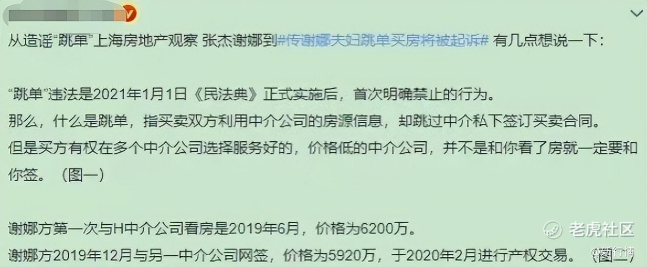 据悉,该事件起因是房产经纪公司员工霍某在网上发文怒斥张杰谢娜夫妇为省高额中介费买豪宅而“跳单”与房东成交,并将带看谢娜看房的照片以及与经纪人约定看房的聊天内容一并公布。