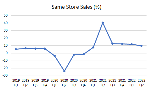 而在收入端,美国市场主要是靠价格上调推动,不过同店销售增长3.7%,远远不及北美地区的食品通胀。而国际市场,尤其是法国和德国市场增长更强烈,同店增长达到了13%。这也与欧洲地区的小麦等原材料(乌克兰是欧洲粮仓)上行得厉害有关。