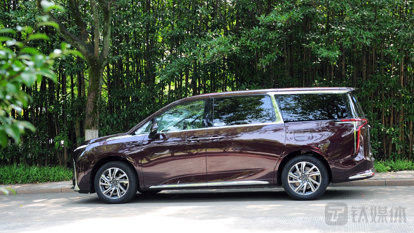 上汽大通MAXUS G90车身长宽高分别为:5280x1998x1845mm,轴距达到目前豪华MPV里最长的3200mm,而宽度更是无人能及,为车内拥有更宽敞的空间提供了保证。从侧面看,与纯电动的MIFA 9基本一样,很有电动车的感觉。悬浮车顶和Z字镀铬装饰彰显出高级感,可以明显感受到的是C柱后面有很长的延伸,将会给第三排更充裕的空间。