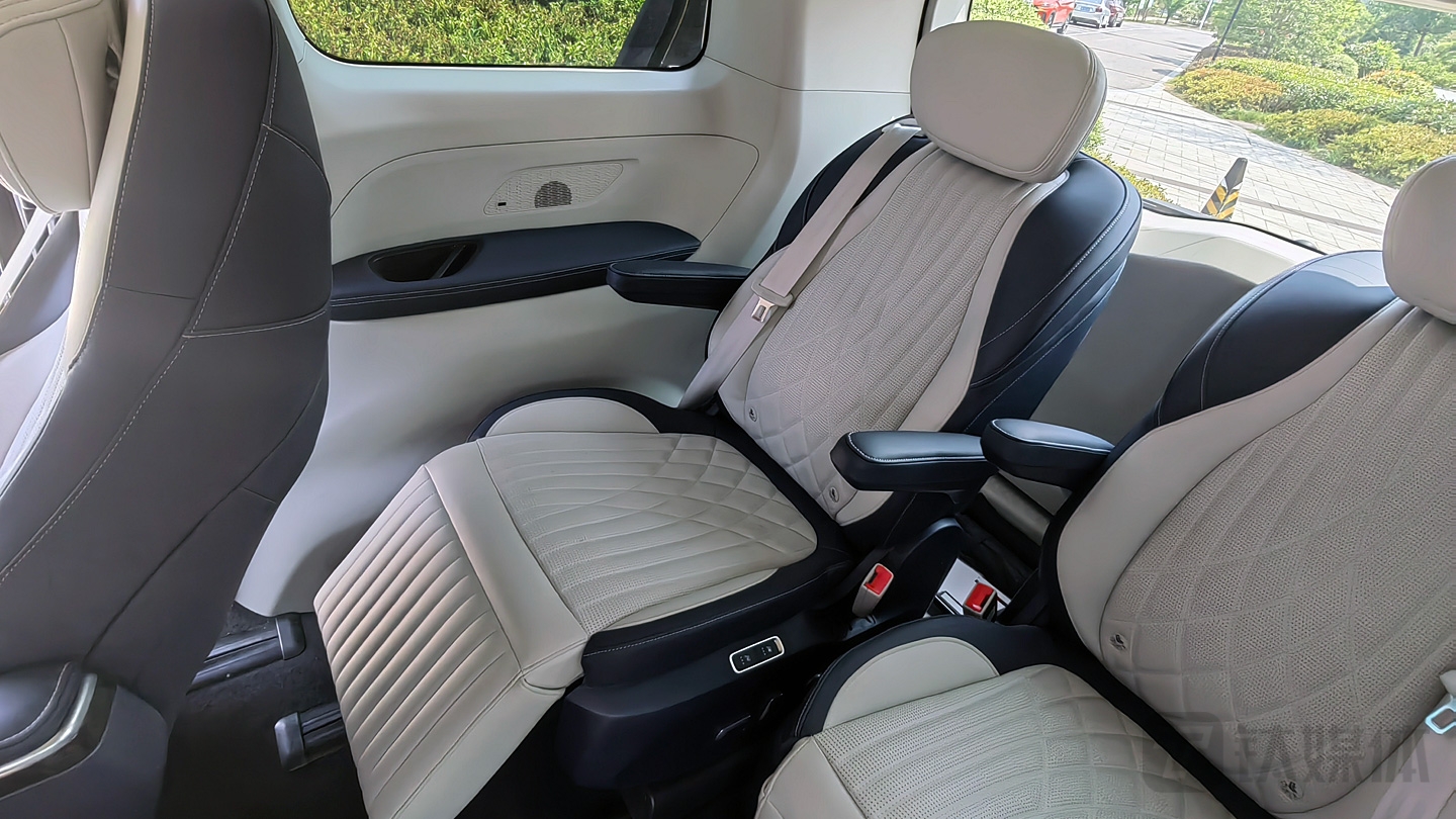 6座版车型的第三排座椅基本和第二排没有差别,同时具备座椅多方向电动调节、加热通风,并且还拥有腿托,这也是在其他车型上没有见到过的。同时,第三排座椅旁边也配备了水杯架和type-C接口,能给予第三排乘客非常好的体验,不用担心家庭出行有任何人“受委屈”了。
