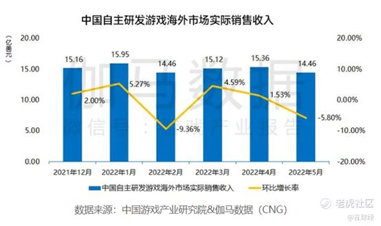 出海最新的数据显示,中国自主研发游戏海外市场实际销售收入为14.46亿美元,环比下降5.80%,下滑的主要原因是部分头部产品流水下滑。