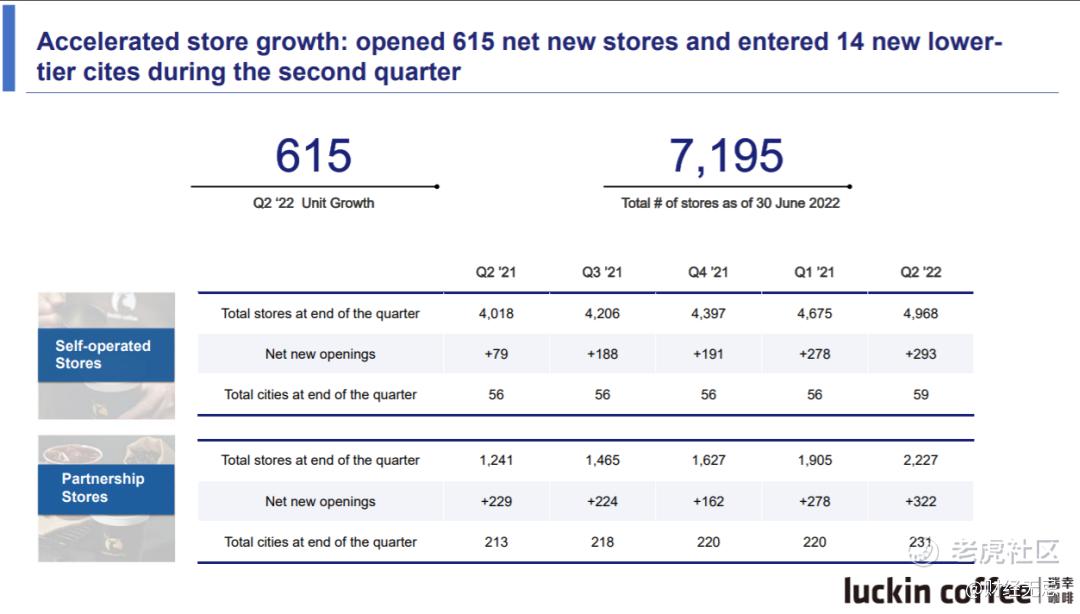 从门店数量来看,瑞幸的扩张保持着稳中有进的合理节奏。截至二季度的7195家门店中,4968家为自营门店,2227家则为联营门店。