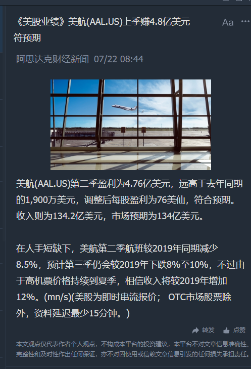 $美国航空(AAL)$