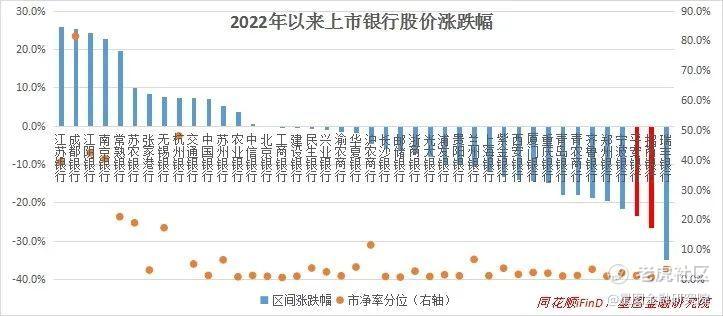 就这些压制因素来看,不同银行所受影响不同,因而股价表现也是冰火两重天: