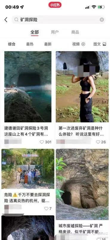除了彭州龙漕沟之外,如果在小红书上搜索“避暑矿坑”,也会看到很多很多早已被废弃的矿洞。