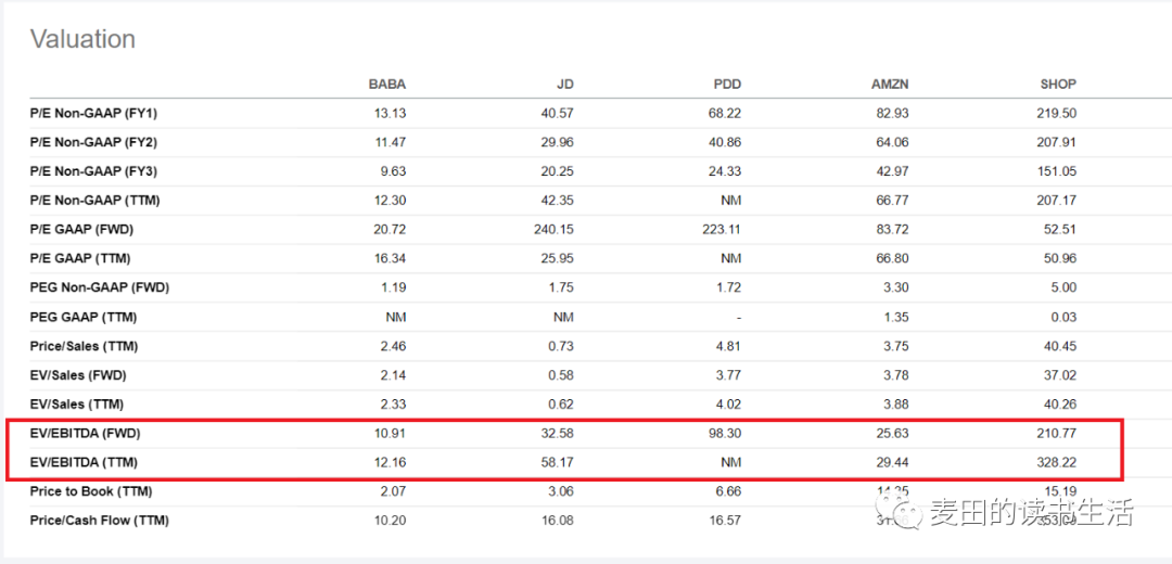 阿里滚动的EV/Ebitda只有12倍多点,而远期EV/Ebitda不到11倍!实在被市场低估了!按照成长股20倍左右的来说EV/Ebitda,阿里目前合理的股价应该能上涨50-80%,股价到达150-180美元左右(btw.上图也可以看出,pdd继续看空)