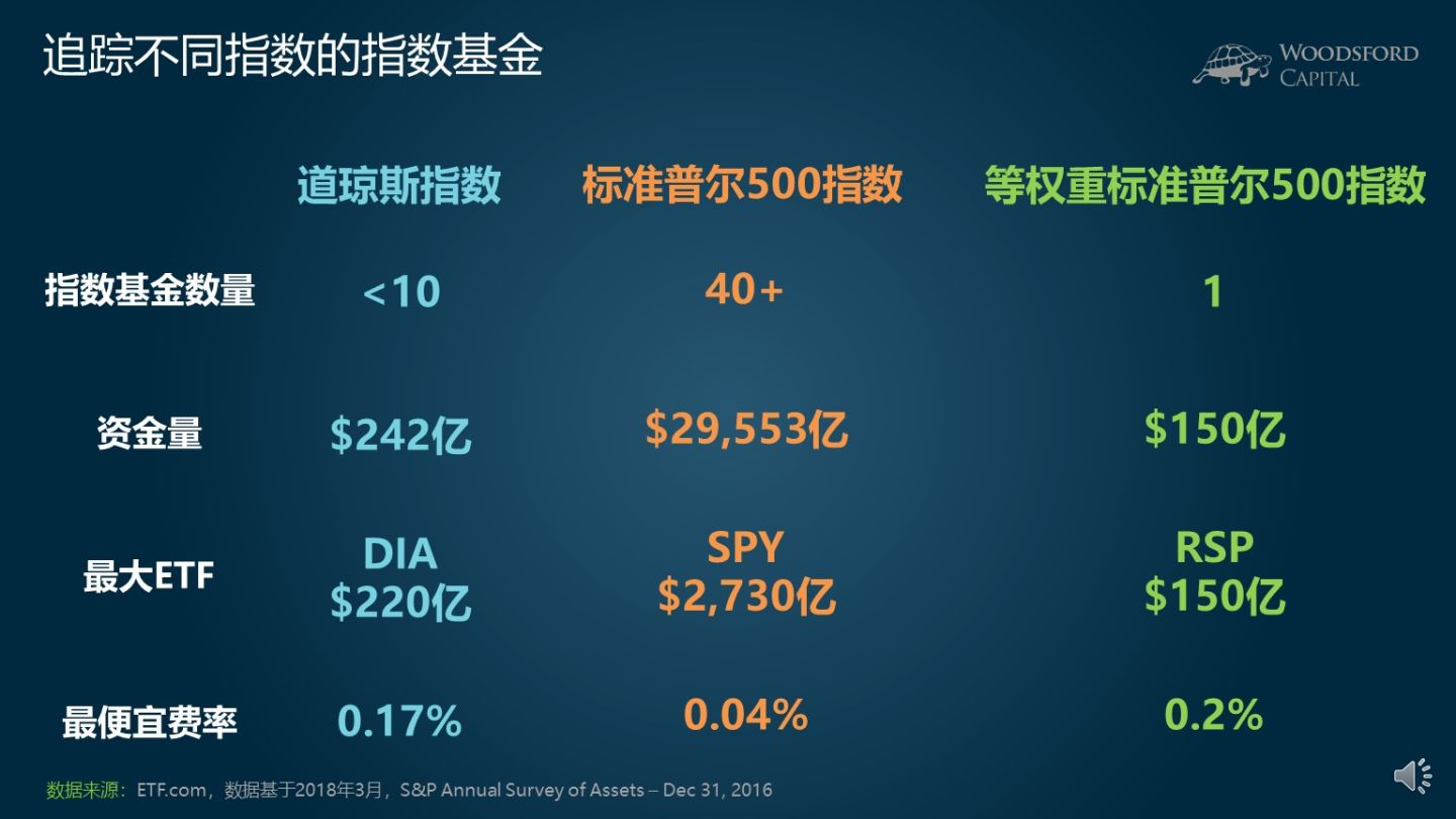 而市值加权指数基金,规模就要大得多。以标准普尔500指数为例,追踪该指数的指数ETF,至少有40多个。他们管理的总资金规模,接近3万亿美元。如果算上ETF之外的那些指数基金,那追踪标普500指数的资金规模就更大了。全世界规模最大的标普500指数基金,SPY,的资金管理规模为2730亿美元。而最便宜的标普500指数基金,其费率仅为0.04%。$标普500ETF(SPY)$