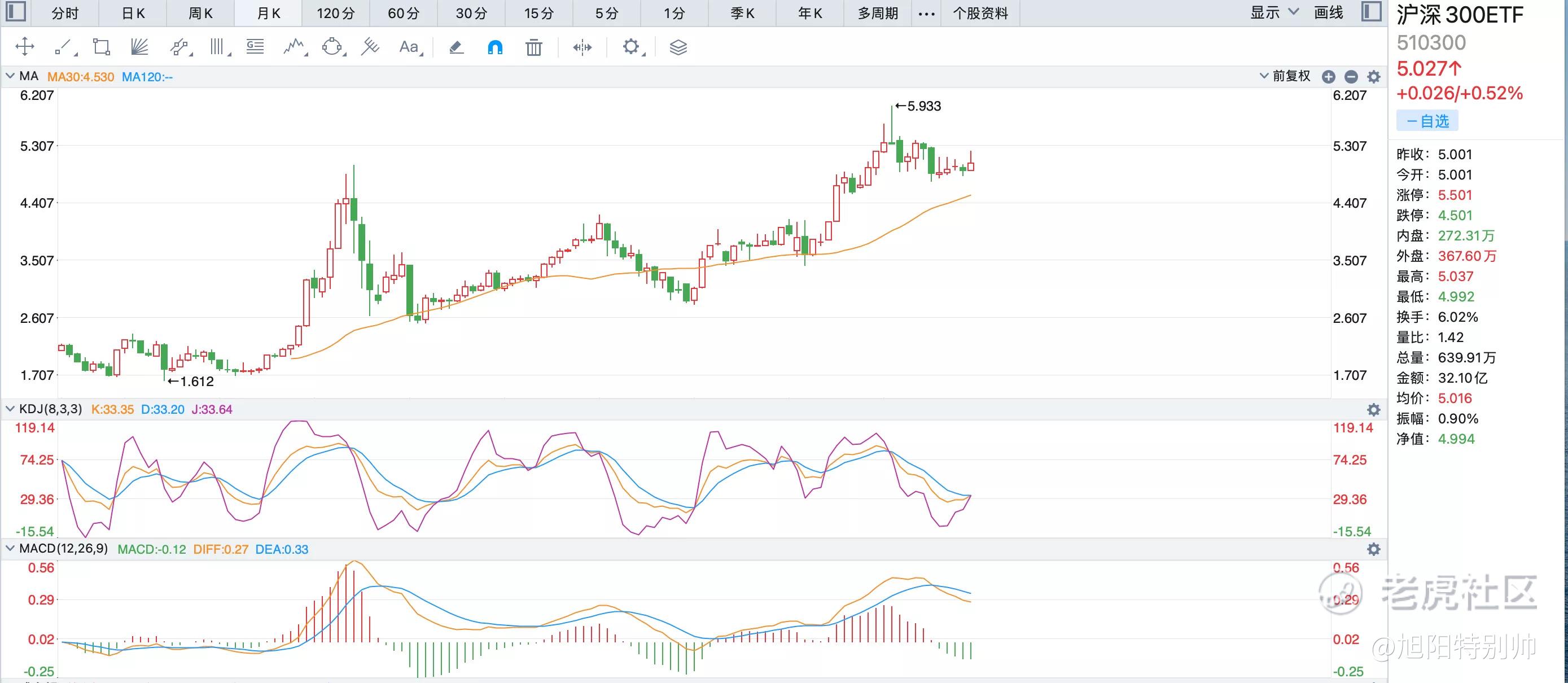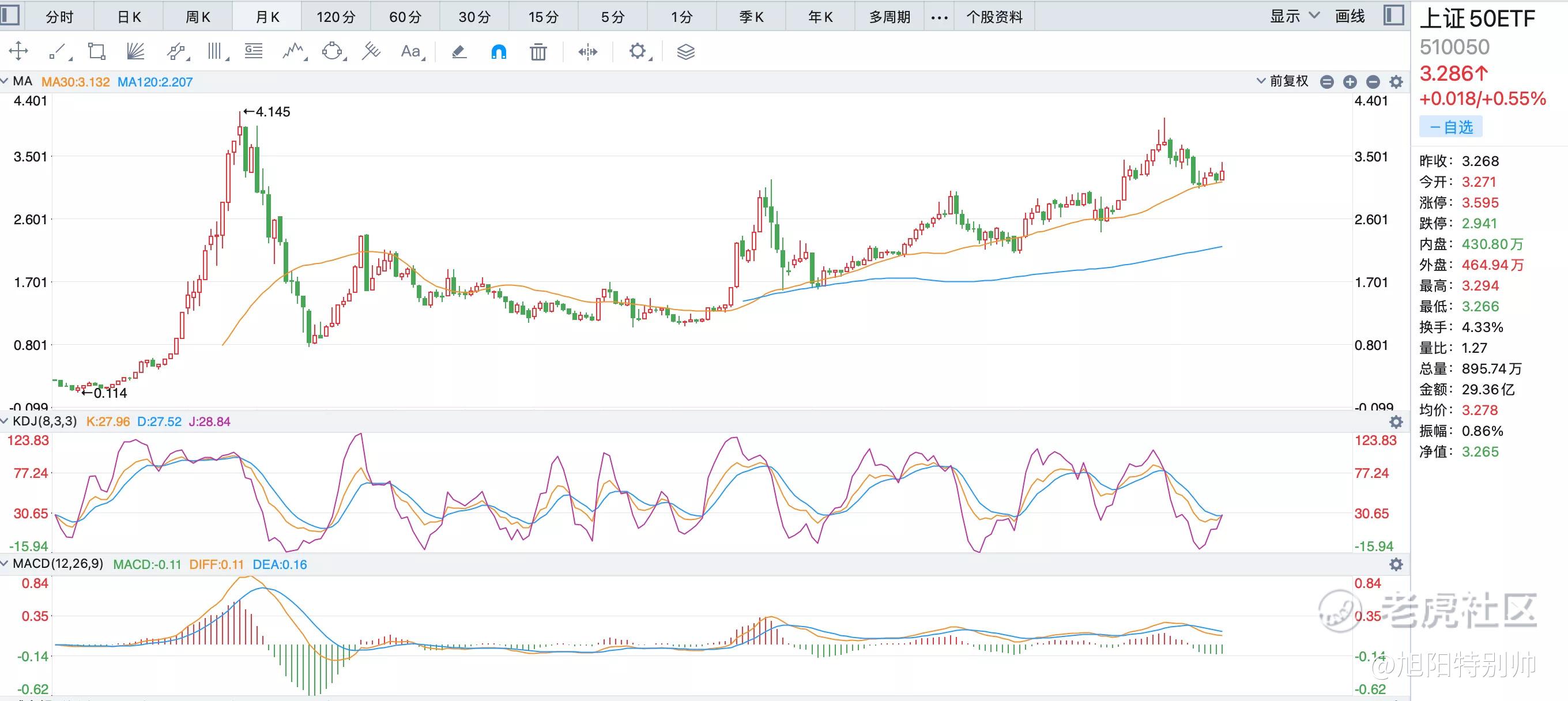 以上是沪深300和上证50的月线走势,这几年来总体是上涨趋势。A股也只有这两个指数期权。其实做这两个指数的期权的纯看涨期权很简单,看月线KDJ和MACD就行。目前MACD距离金叉还差许多,并且数值居于高位,虽然KDJ金叉了,但笔者判断还得横盘好长一段时间。