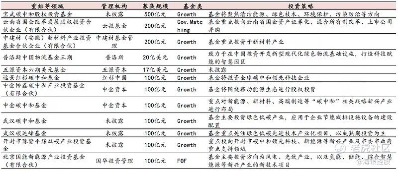 国内“碳中和”能源相关主题基金成立迅速。本年度受国内“碳中和”相关政策推动影响,多只百亿规模以上能源类主题基金相继成立。投资领域主要聚焦能源、“碳中和”等领域。本年度新设基金中,市场中已有规模超过500亿元的“碳中和”股权基金成立,预计相关领域将是股权投资未来2-3年的热点投资领域。