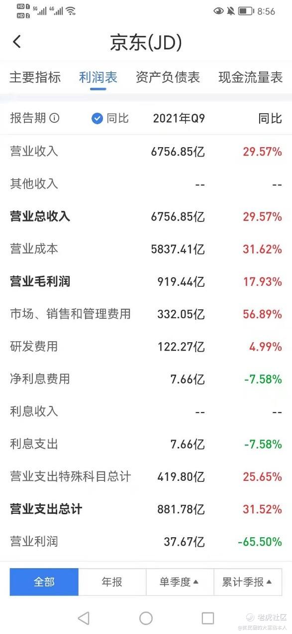 京东目前是年初的108跌到68,动态市盈率为26,贵不贵?要知道阿里巴巴才16倍。我们看数据: