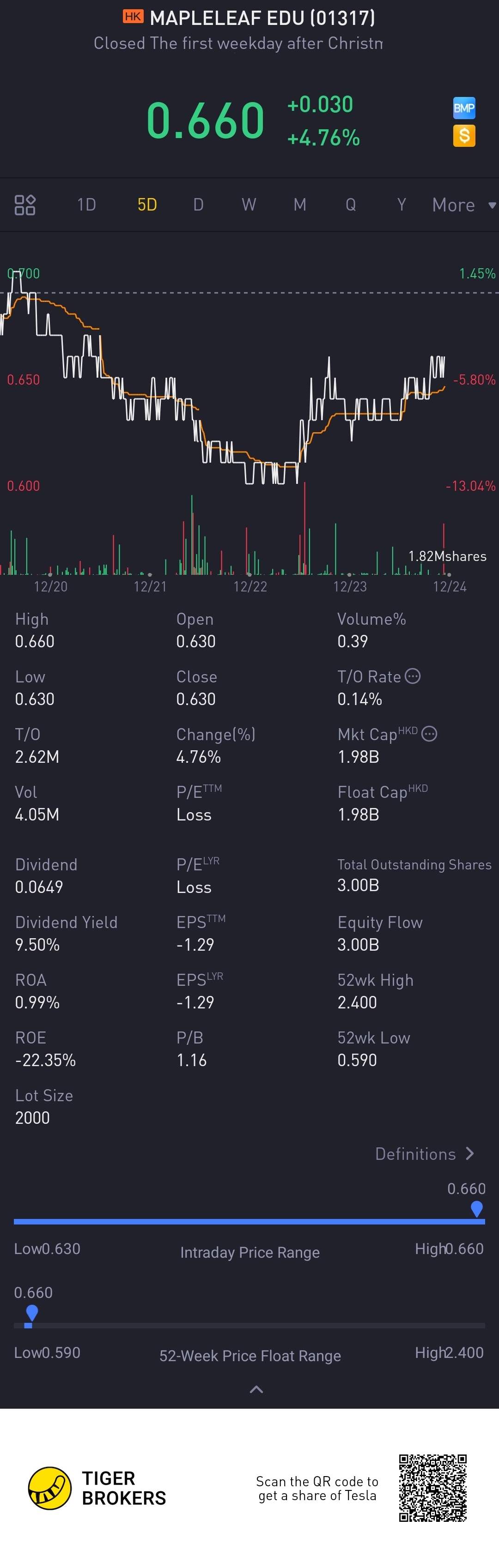 $MAPLELEAF EDU(01317)$recently, chairman has just bought 2m shares on 14 dec. Anyone got any thoughts for this stock?
