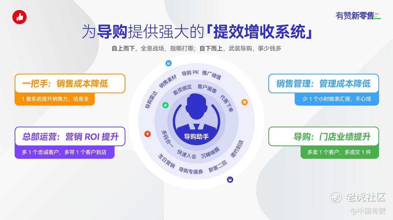 “零售正在发生剧变,然而导购作为商家最直接跟消费者沟通的岗位这一点不会变,导购决定了消费者在接收到产品信息后是否产生购买预期,是否有好的购物体验,以及对品牌是否满意。”有赞新零售客户成功总监Rita指出了在以消费者为中心构建新零售过程中,导购是最重要的杠杆角色。