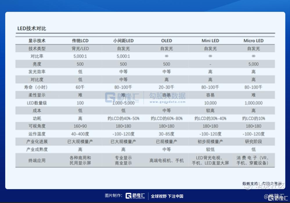 目前,Micro LED/MINI LED是被产业链共识将成为下一代显示技术的核心方案,根据资料显示,Mini LED具备更优良的显示效果,响应速度有着数量级的提升,屏幕可以更轻薄,并且随着功耗的大幅度降低,可以延长电池续航时间。与OLED显示屏对比,Mini LED在同时保持着出色显示效果和柔性下,拥有更快的响应速度、更高的高温可靠性。Mini LED相比小间距LED的重要特征在于去封装化,主要定位高端小间距LED显示屏市场,能够实现更高的分辨率和显示效果。