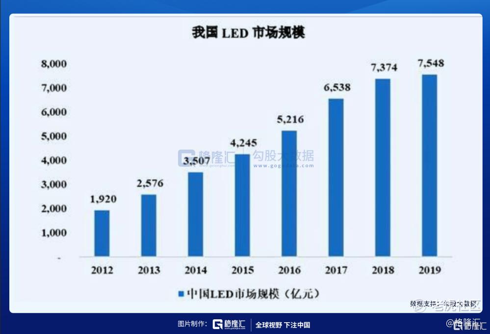 与其说这些大佬重仓三安光电是因为这家公司地位的话,还不如说是押注未来在LED的技术趋势。近些年,随着LED技术成熟和灯珠成本的降低,LED产品在各种下游应用领域渗透率不断提升,我国LED市场规模持续增加。根据国家半导体照明工程研发及产业联盟数据,我国LED市场规模自2012年的1920亿元增长至2019年的7548亿元,年均复合增长率为21.60%。