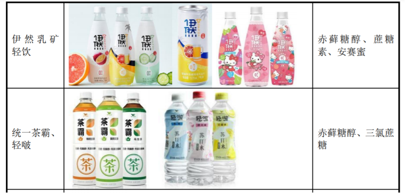 2020年,国内添加赤藓糖醇的部分饮料新品,图源:三元生物招股书