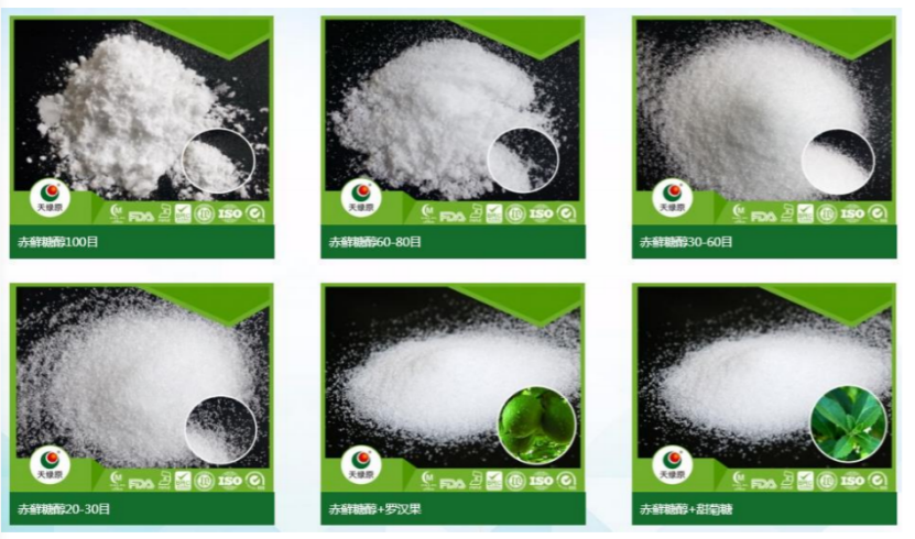 它主要以小麦或玉米等淀粉质原料,通过微生物发酵法大批量生产。赤藓糖醇的甜度相对比较低,入口清凉,口味纯正,没有后苦感。