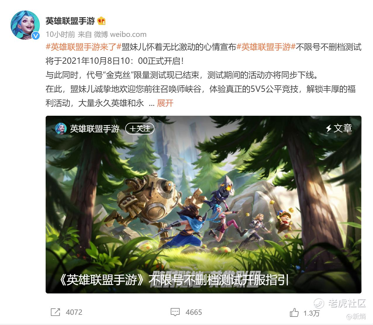 近日,英雄联盟手游官方发布微博,宣布英雄联盟手游国服将于10月8日10点开启内测。