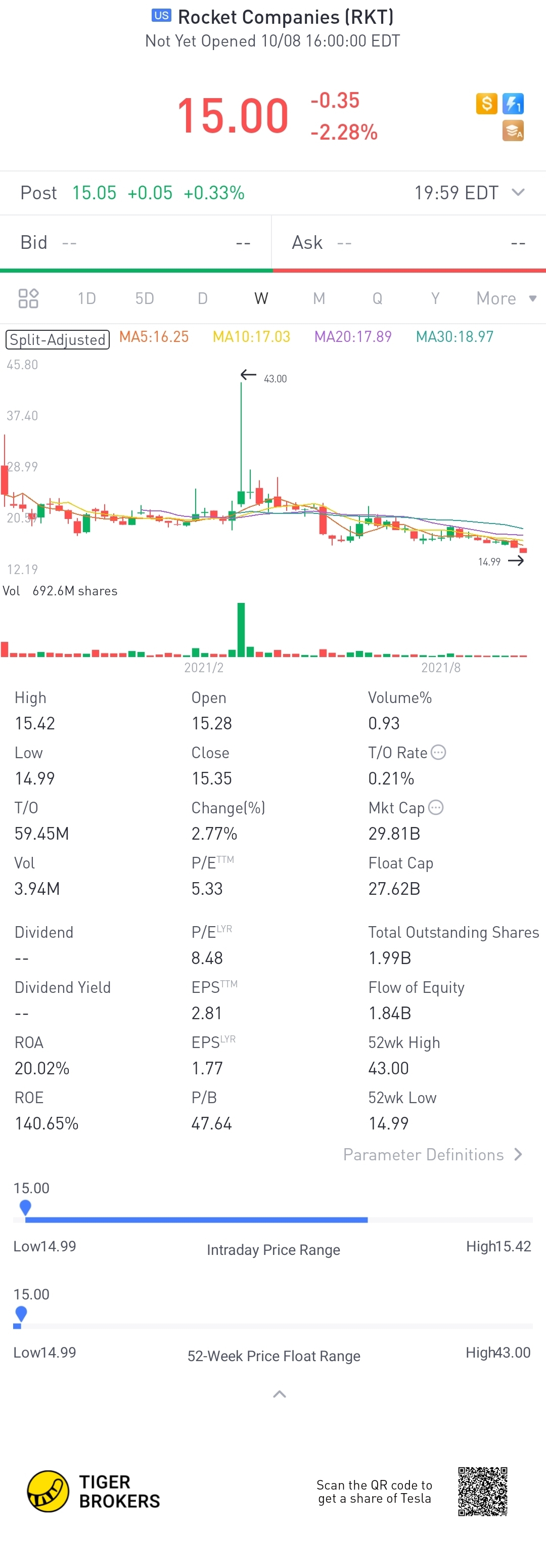 $Rocket Companies(RKT)$rocket is back down. Now my next entry will be around November....