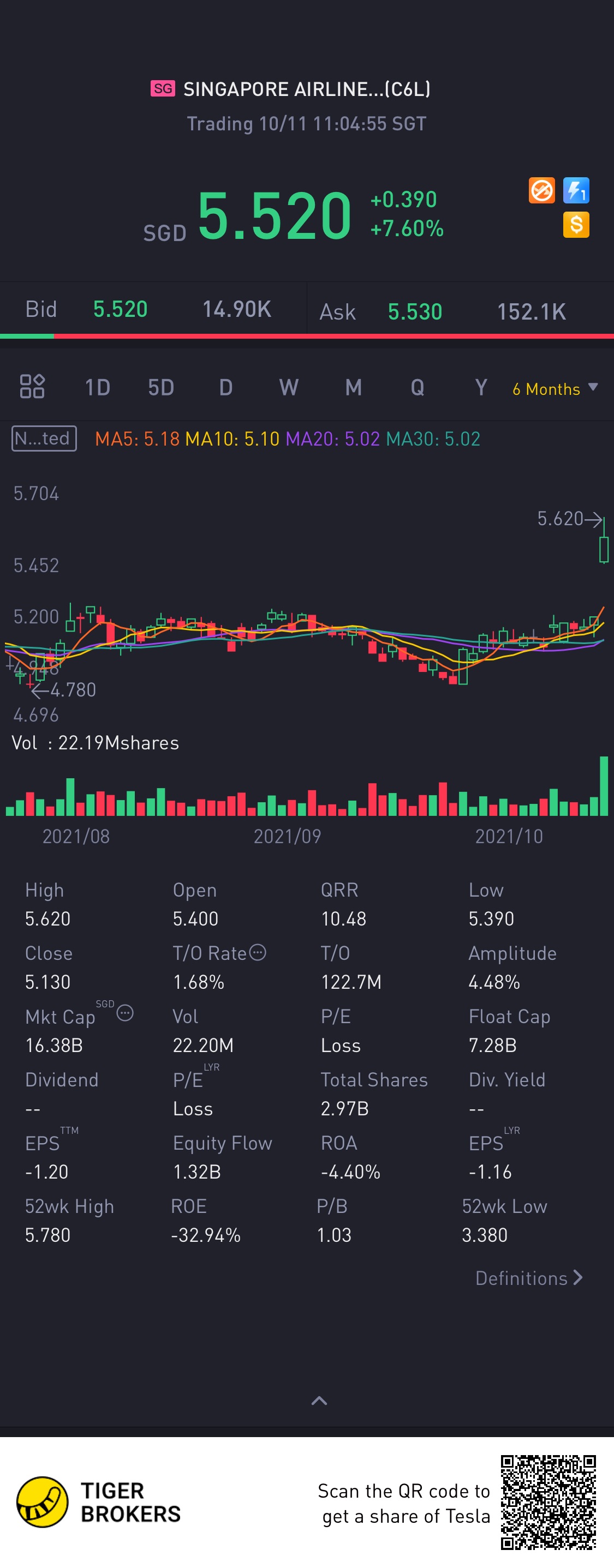 $SINGAPORE AIRLINES LTD(C6L.SI)$