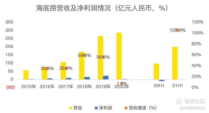 今年上半年,海底捞营收201亿,较去年同期98亿大增106%。