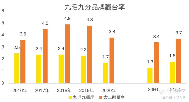 即使老气横秋的九毛九餐厅,在关闭经营不佳的门店之后,翻台率也同比增长,由去年同期的1.3上升至1.8.