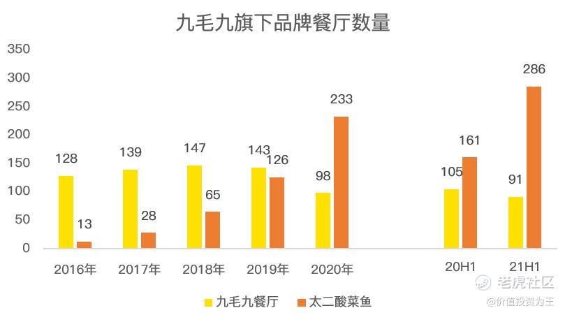 从体量上看,太二酸菜鱼的数量仅286家,还有大幅提升的空间,在一段时间内,不用担忧九毛九的增长风险。