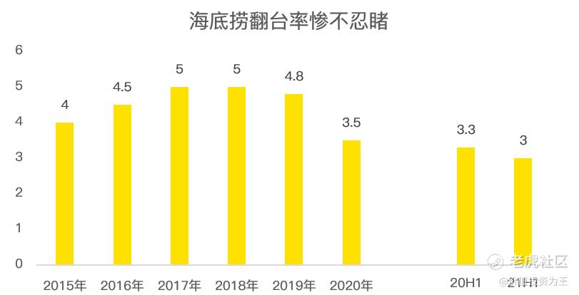 翻台率方面,海底捞上半年是3,去年同期是3.3。