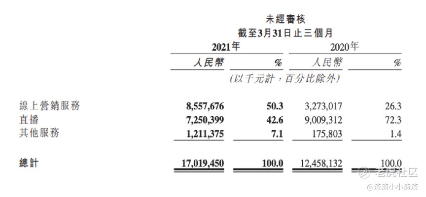 快手基本上Q1用光了全年的用户增长了,基本上是Q1大增长,然后都推销增值服务,所以用户增长停顿但是收入数字大幅上升,主要是直播电商类的收入。