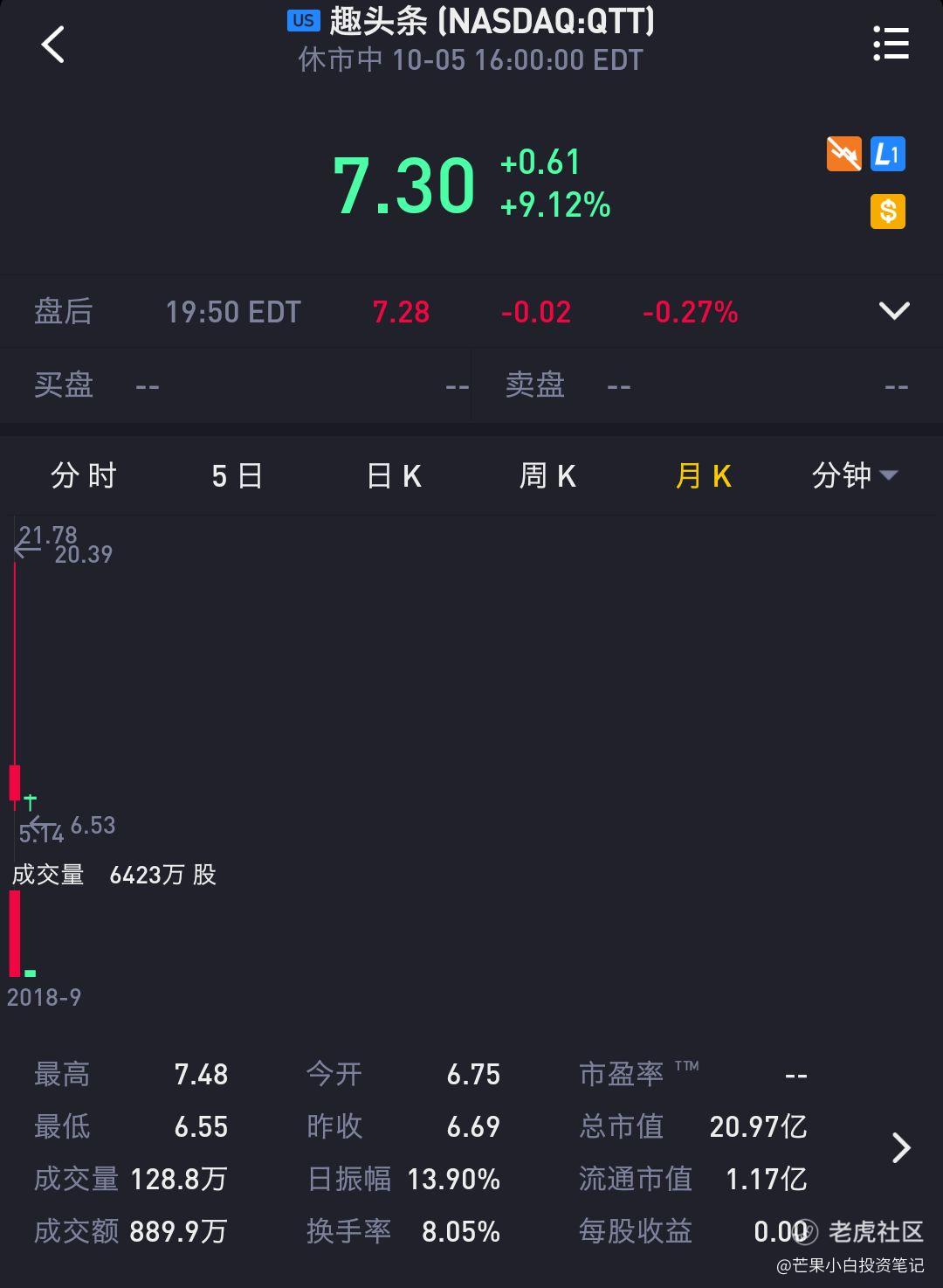 以刚刚上市的趣头条为例,它的流通市值1亿美金,仅仅占总市值20亿美金的5%,注定会是一支妖股,因为少数资金少数人就能让它妖起来!