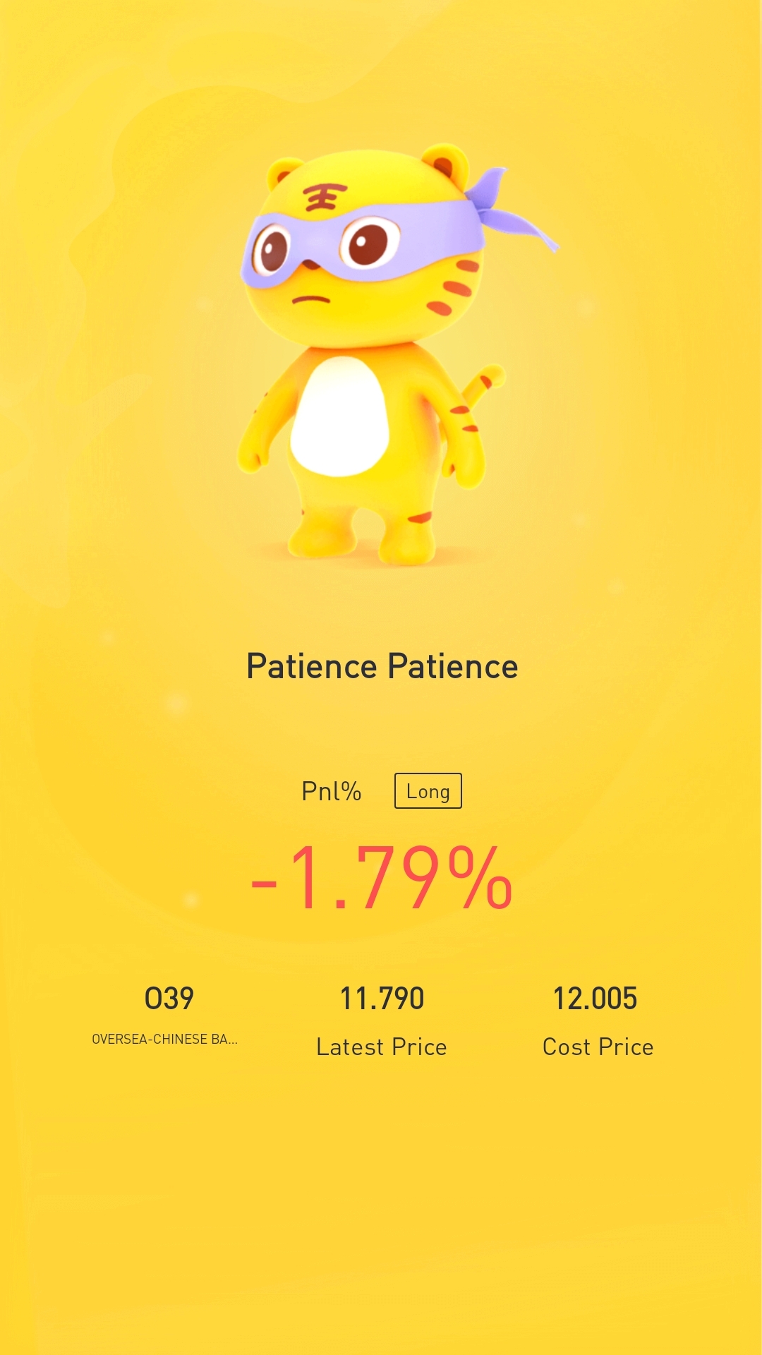 $OVERSEA-CHINESE BANKING CORP(O39.SI)$what I've read in posts by other users is to hold bank stocks for long term. Trusting the process.
