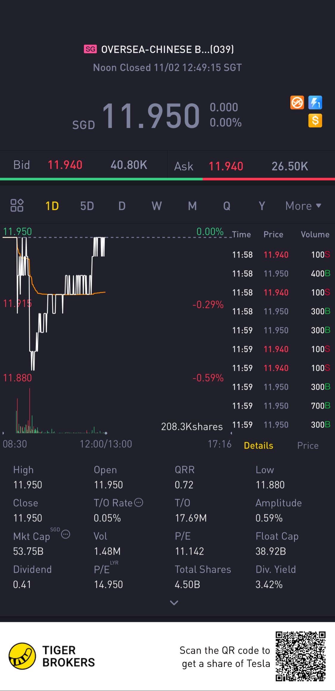 $OVERSEA-CHINESE BANKING CORP(O39.SI)$Moving so slow compared to the other 2 bigger banks