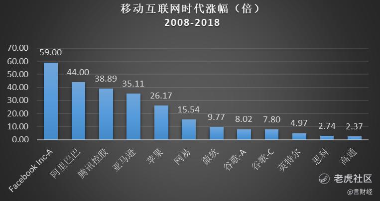 乍看之下,微软的涨幅远不如苹果及亚马逊,但是考虑其巨头的市值基数,微软在移动互联网时代市值还是成长为全球的前三,与苹果、亚马逊比肩,而且远远超过英特尔、思科等PC时代巨头。
