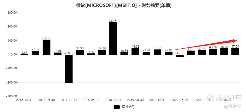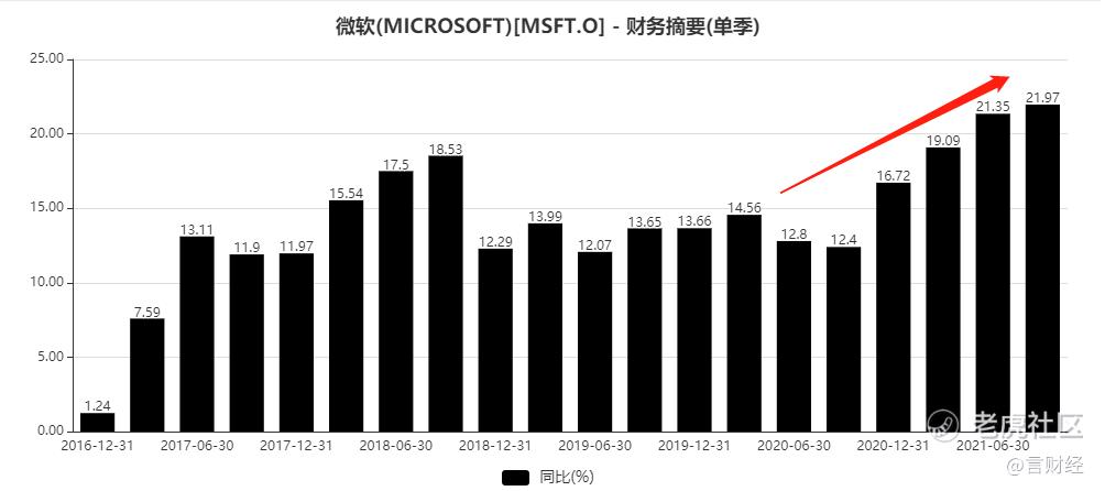 最新一季度,微软的业绩有多超预期,我们一起来看一下: