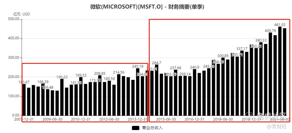 从微软2009-2021的月线图,我们折服于如此“漂亮”的K线,在这背后是微软一次次地再成长,一次次地突破自己,曾几何时,微软、思科、IBM、甲骨文作为传统的科技巨头市值不相上下,但随时间流逝,只有微软不断突破,成长为市值破两万亿的巨头,投资者不仅有以下疑问: