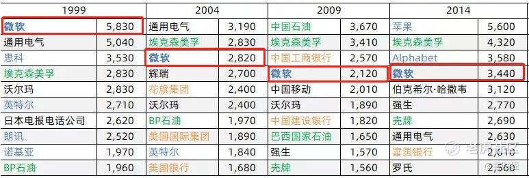 1. 在2000年以前,伴随互联网行业的兴起,PC在欧美逐渐普及,而作为操作系统的全球龙头,微软成为资本市场的宠儿,成为全球市值最高的公司