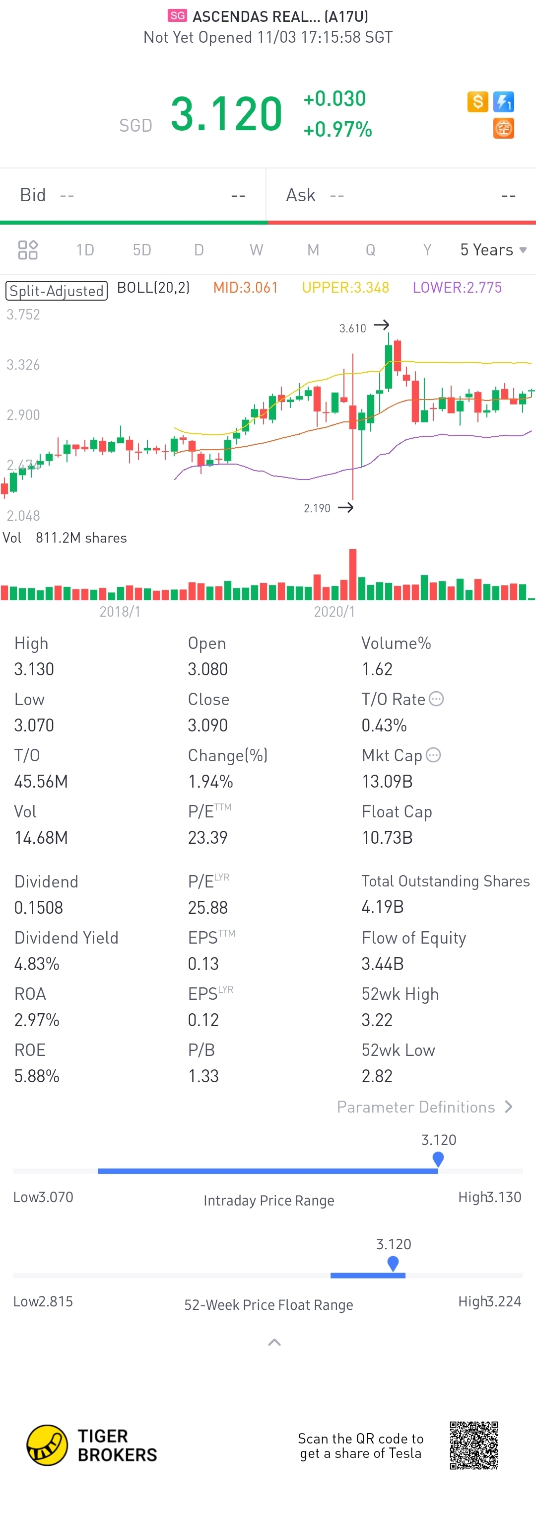 $ASCENDAS REAL ESTATE INV TRUST(A17U.SI)$
