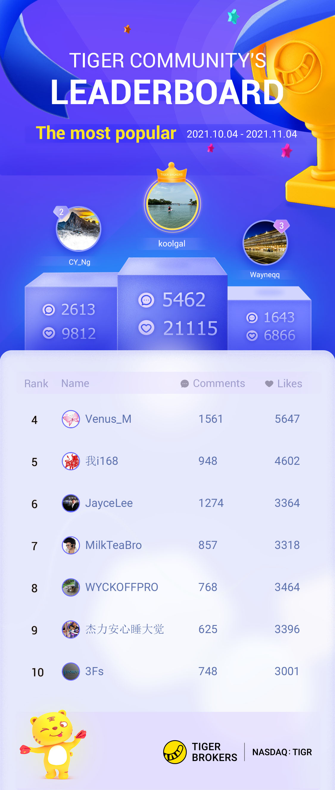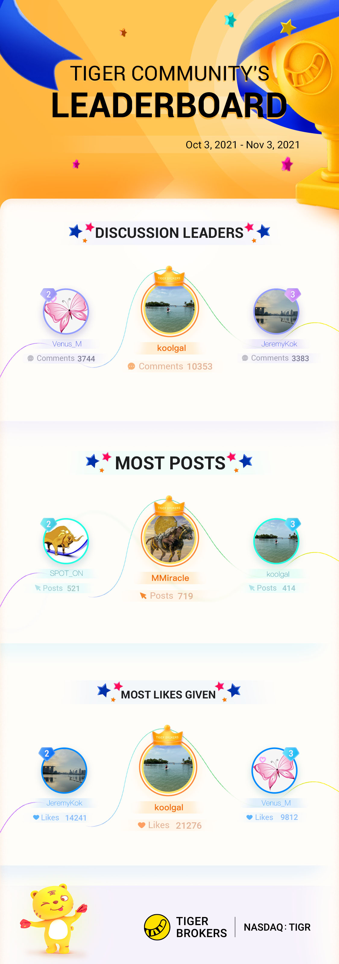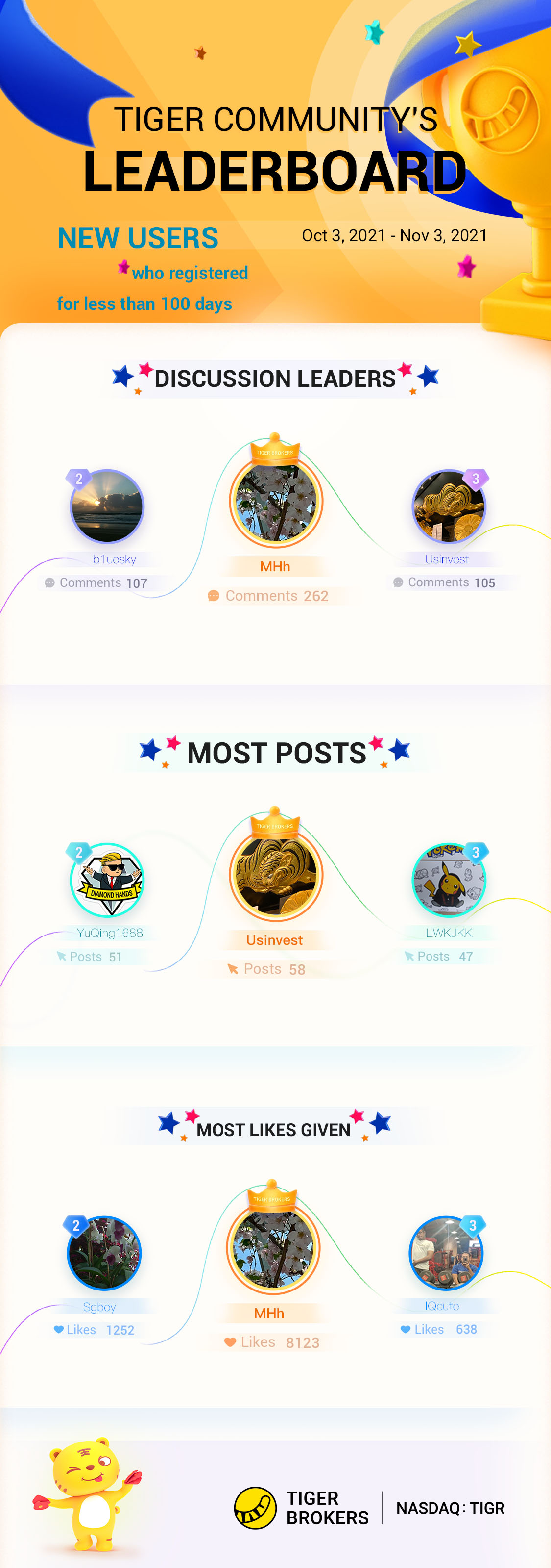 We launched a new leaderboard to encourage NEW USERS to share their opinions in our community. Tigers who registered for less than 100 days would be candidates for the leaderboard.