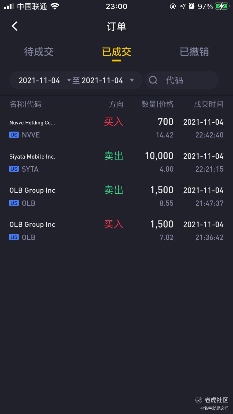 $OLB Group Inc(OLB)$$Nuvve Holding Corp.(NVVE)$$Capri Holdings Ltd(CPRI)$吸取了昨天没有买CPRI的经验,今天买了点NVVE,趋势股尝试一下,睡觉了